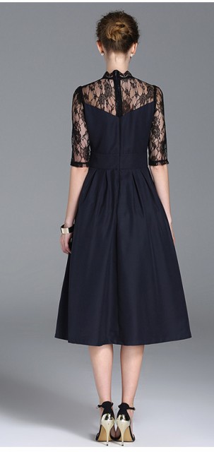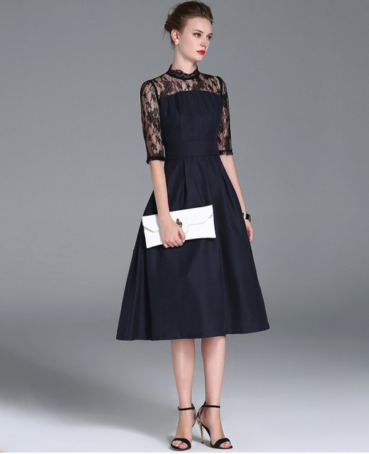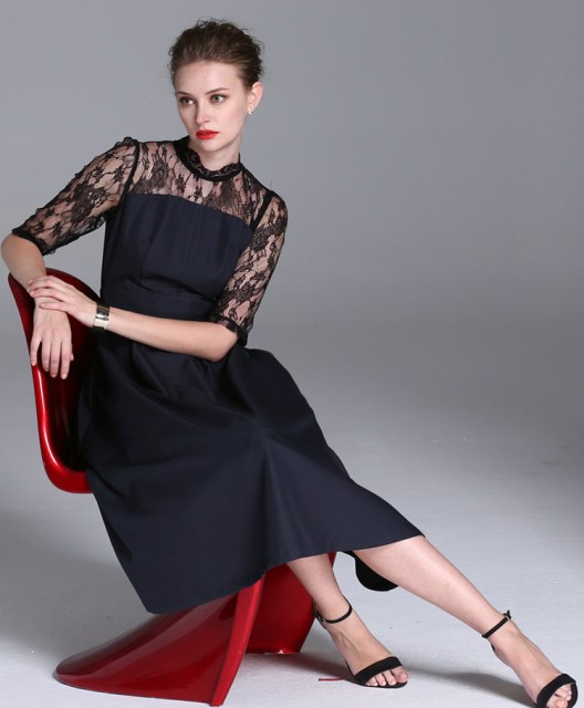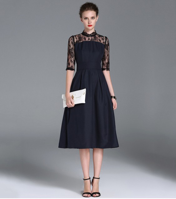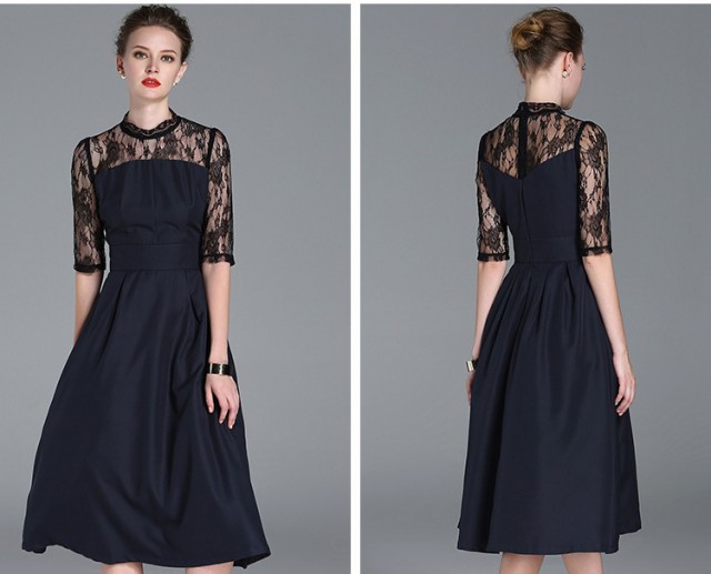 上品な女性らしいひざ下ワンピース。