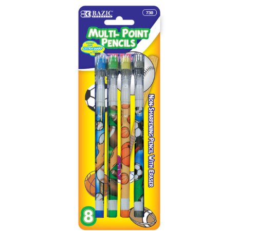 BAZIC Sports Push-A-Point Pencil, Assorted, 8 Per Pack