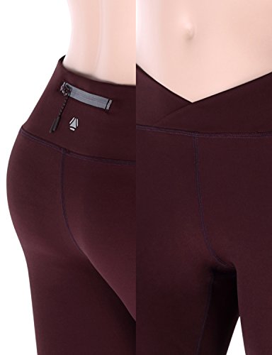 Title : Yoga Reflex - Workout Pants for Women's Fitness - Back Zip Pocket, MAROON, XL