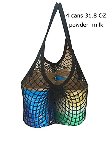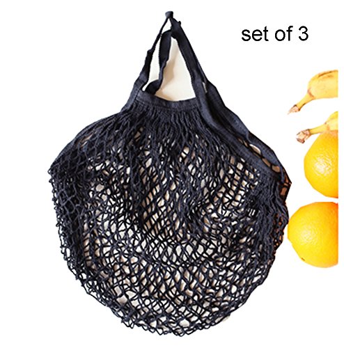 Ahyuan Reusable Grocery Bags Cotton String Bag Mesh Bags Set of 3 (BLACK)