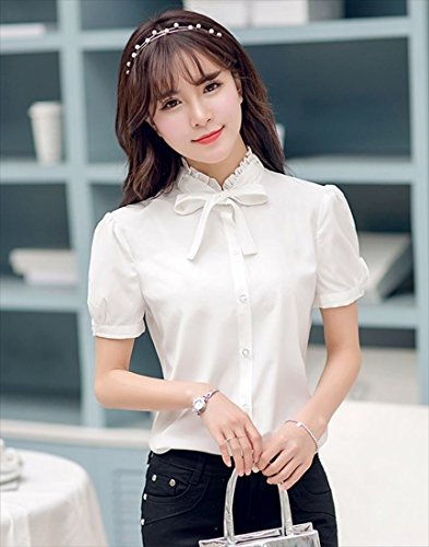 -. Title : (フムフム) fumu fumu 2016 夏 ブラウス 半袖 ( フリルカラー リボン ) エレガント 高品質 OL オシャレ ボウタイ 大きめサイズ ビジネス オフィス服 シャツ カットソー ホワイト ブラック ピンク 水色 S M L XL XXL