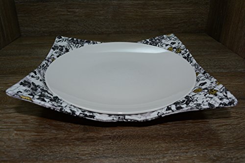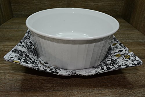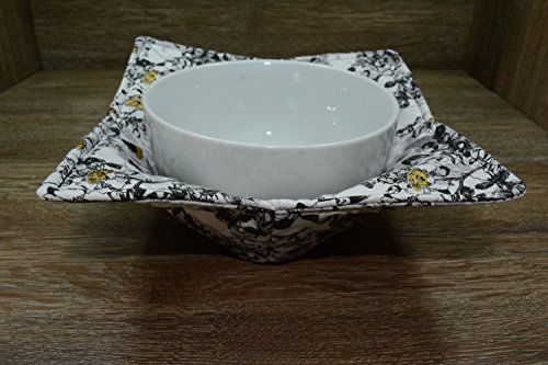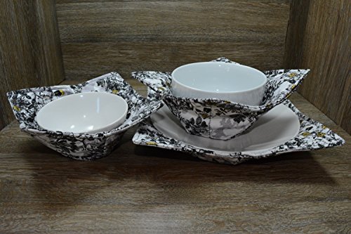 Product Description Microwave cozy set includes 1 small bowl cozy (Approx 6.5" sq), 1 medium bowl cozy (Approx 8" sq), 1 dinner plate cozy (Approx 10" sq.) The dinner plate cozy can also be used for round casserole dishes and the small size is great for coffee mugs! These microwave cozies are the perfect solution to handling super-hot dishes. Cooking and reheating food in a dish cozy makes life so much easier! Place your microwaveable dish inside the bowl cozy and put the whole thing in the microwave to heat. To take the bowl out, you simply grab the corners of the cozy. We found that our kids can now get their dishes out of the microwave safely. Cozies will also protect your fingers from the cold when holding a bowl of ice cream and are great for protecting your table. You can also use a cozy placed on top the dish you are microwaving to help steam food. MATERIALS: * 100% cotton fabric * 2 layers of 100% cotton batting * 100% cotton thread Please be advised: Bowl cozies must only be used in microwaves with a rotating base. To avoid scorching or burning, please make sure cozy freely rotates in your microwave. Never leave microwave unattended. Make sure cozy is clean with no pieces of food attached. Do not microwave cozy for more than three minutes. Cozies can be machine washed on delicate cycle. Reshape and allow to air dry for best results. Please let us know if this is a gift, and we will ship without a packing slip enclosed! #bowlcozy #microwaveable #handmadeatamazon #hot4handmade #buyhandmade 0