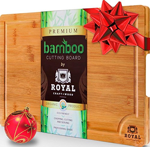 EXTRA LARGE Organic Bamboo Cutting Board with Juice Groove - Best Kitchen Chopping Board for Meat (Butcher Block) Cheese and Vegetables | Anti Microbial Heavy Duty Serving Tray w/ Handles - 18 x 12