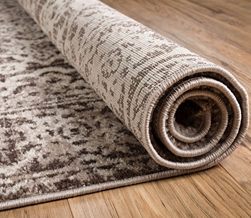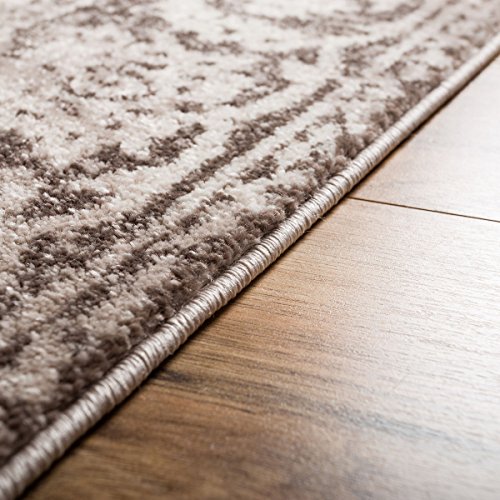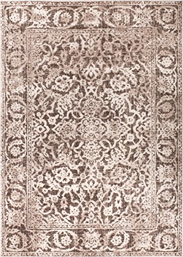 Yorkshire Brown is an Old World style made fresh and new with modern design elements. A classic Oriental Sarouk design is updated with a contemporary palette of brown, beige, and ivory. The pattern is heavily distressed to give the quality of a timeless antique. A plush 0.5" pile of air twist frieze polypropylene gives an exceptional textured look. The yarn is soft, stain resistant, and doesn't shed or fade over time. A 100% jute backing is safe for wood floors and all four sides of the rug are serged for improved durability.Feature