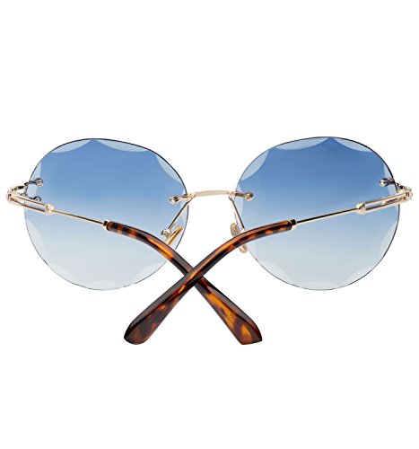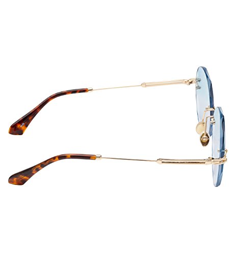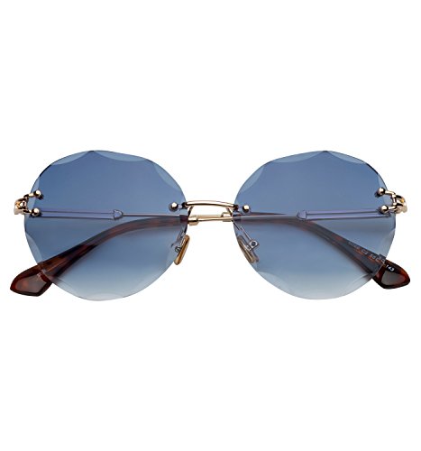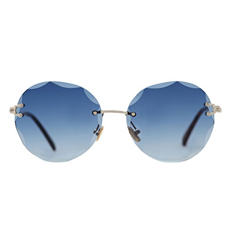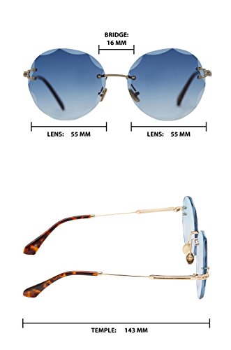 Rimless Round Frame with Etched Rim Havana Temples Unisex Sunglasses, Pouch Included