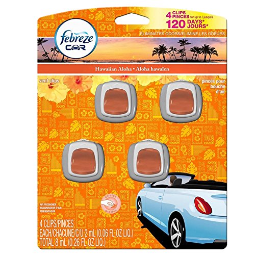 Febreze Hawaiian Aloha Car Vent Clip Air Freshener, 0.06 oz, 4 Pack