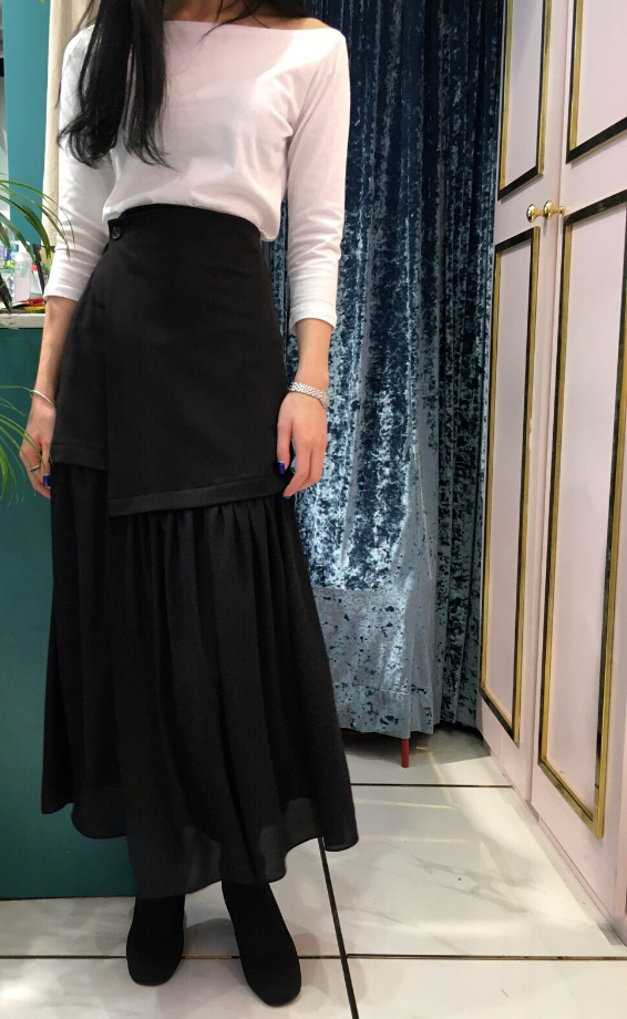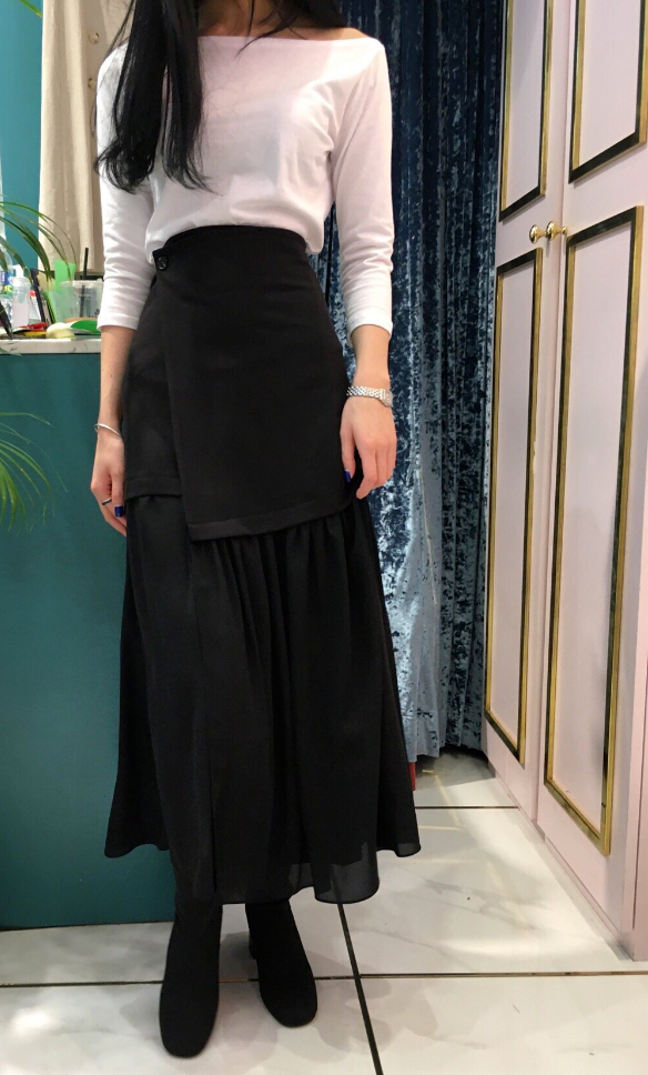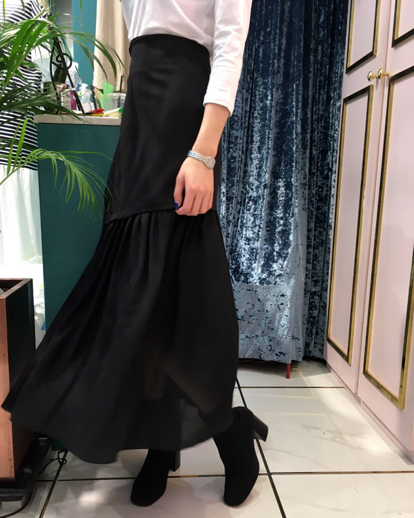 Lap skirt chiffon feminine ruffle long-sleeved sensibility french street look autumn long coordination chic
