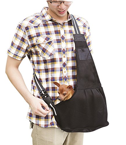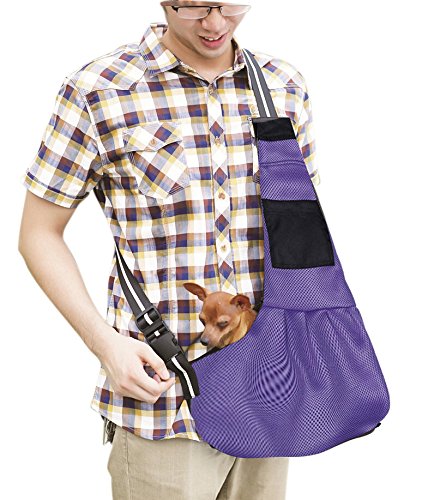 -. Feature : 100% Brand new and high quality mesh pet sling carrier for pets up to 11 pounds, perfect for small dogs, cats, rabbit, guinea, puppy other small animals / High quality soft mesh cotton with good breathability,wear-resistant and machine washable, soft lining,great for spring summer autumn / FakeFace hands-free pet carrier able to hold the whole pet and just keep the head outside, making your pets enjoy sunshine and fresh air / With attached pouch and widen strap for added comfort and convenience; Interior attached metal hook clip and leash for extra security / Size: M,L. Size M: 62*18*14cm(L*W*H) fit for 2-3.5kg(4.4-7.7lb) pets; Size L: 64*20*16cm(L*W*H) fit for 3.5-5.5kg(7.7-11lb) pets.