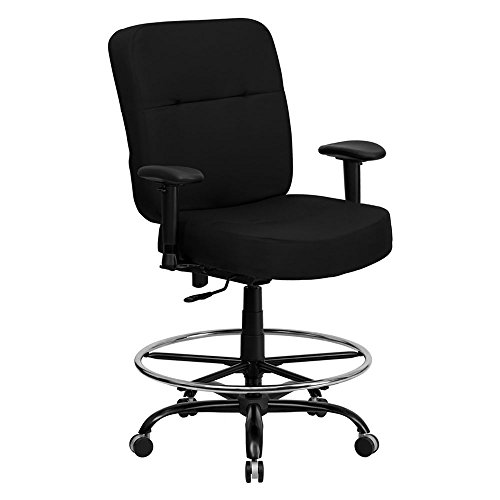 -. Title : Flash Furniture HERCULES Series 400 lb Capacity Big and Tall Black Fabric Drafting Stool with Arms and Extra Wide Seat [WL-735SYG-BK-AD-GG]