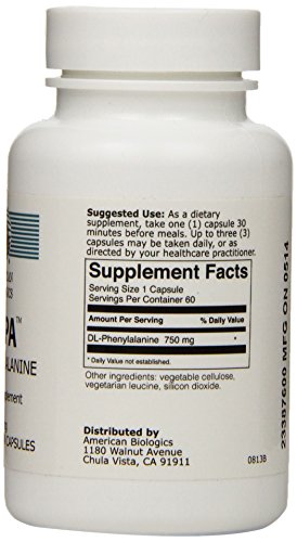 Studio : American Biologics Publisher : American Biologics Binding : Health and Beauty Product Description L-phenylalanine is frequently supplemented by ortho- molecular medical doctors and psychiatrists because it is reported to possibly be beneficial with mood instabilities. 0