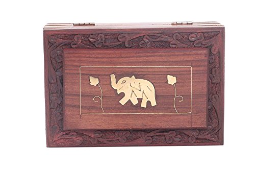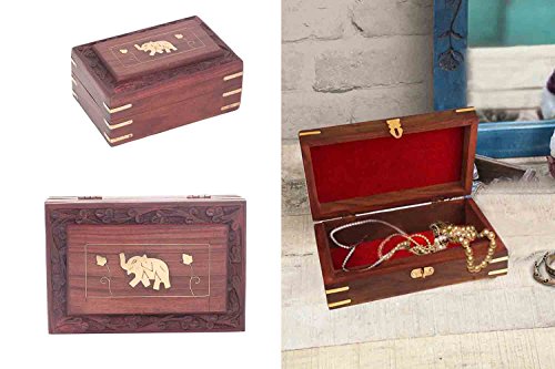 Valentine Day Special Gift, Wooden Jewelry Box Brass Inlay 1 Elephant Design, Wooden Jewelry Box, Wooden Vintage Box, Keepsake Storage Box, Trinket Box, Brown Color Size 6 X 4 Inch