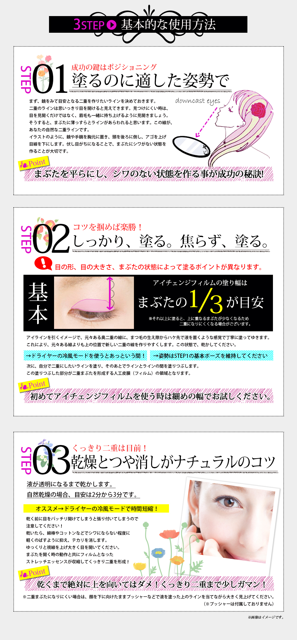 独自ストレッチエッセンスを まぶたに塗ることで
