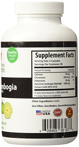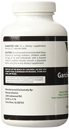 -. Feature : Miracle Vitamin Garcinia Cambogia Extract standardized to 60% HCA with naturally occurring calcium and potassium for maximum absorption. / Non-stimulating, safe and effective appetite suppressant and weight loss supplement. Zero fillers, zero binders, and zero artificial ingredients. / Garcinia Cambogia has been clinically shown to help curb appetite, reduce caloric intake, burn fat, reduce body weight 3-times more than diet and exercise alone, and promote healthy cholesterol and serotonin levels. / Made in USA in an FDA approved facility and under strict GMP standards. / Twice the number of milligrams and value per bottle than most leading brands. 500 mg per capsule. 180 vegetarian capsules per bottle.