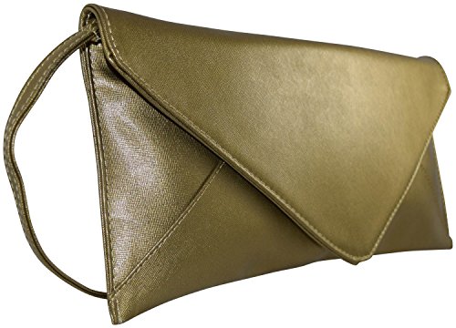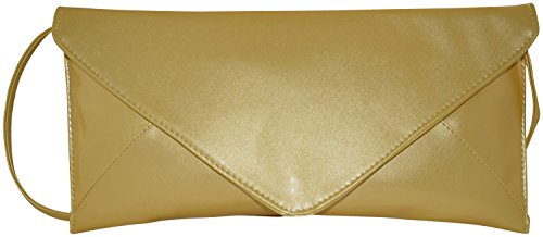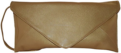 Patzino Fashion Collection, Faux Leather Chic Women's Envelope Clutch (Flat Gold)