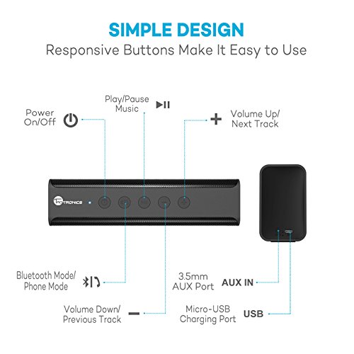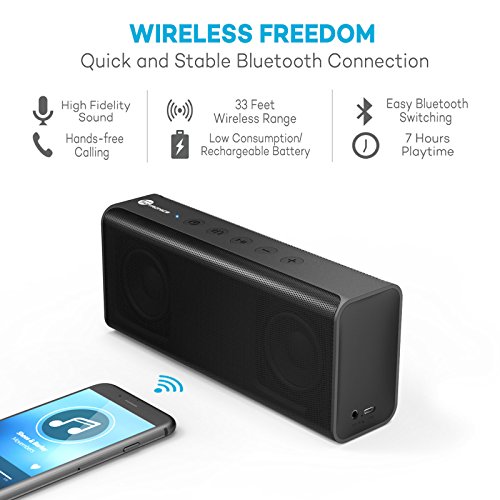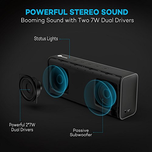 Bluetooth Speakers,TaoTronics 14W Stereo Wireless Portable Bluetooth Speaker Pulse X from Dual 7W Drivers, Strong Bass, High Definition Audio, Built-in Microphone