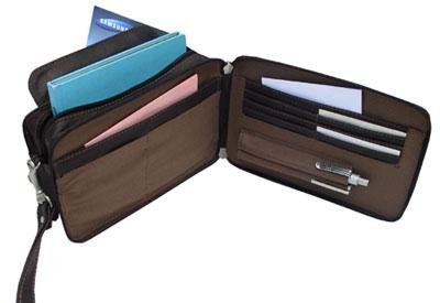 Studio : Piel Leather Publisher : Piel Leather Binding : Apparel Product Description Pocket book bag with zip-pocket and cell phone pocket in front, lap pocket on the back for a wallet or passport, 3-way zip opening compartment for credit cards, pens, and cd's. One main compartment for a camera and more. 0