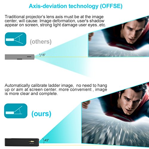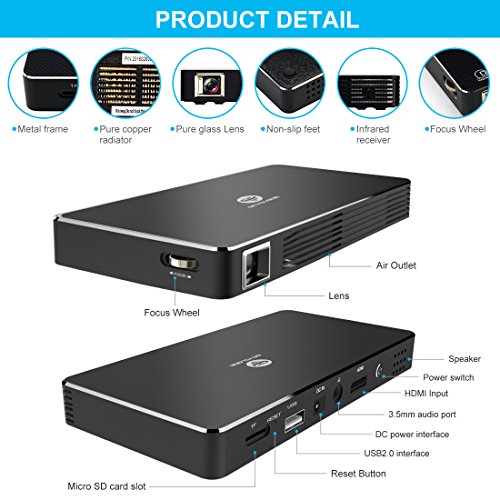 【Luxurious configuration】: Newest DLP technology and quad-core ARM CPU support 1920*1080 HD resolution, projection display size up to 120 Inches.