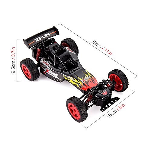 Studio : ZFLIN Publisher : ZFLIN Product Description Specificaiton Special Note: This rc car can not walk in straight line in the smooth road(original design) and fine tuning(vernier device)set is in the bottom of crawler buggy . Not for children under 3. Recommend age is 8. Scale: 1:16 Radio Bands:2.4GHz Radio Control System Control Distance: 50M Speed: 15km/h Car Battery: 4.8V/600mAh Ni-MH Battery Remote Control Battery: 3 x 1.5V AA Battery (Not included in the package) Charging Time: 180mins Playing Time: About 10-12mins Product Size: 27*15.5*9cm Features Motor: Powerful brushed 390 motor, brings strong power output, speed can reach 15km/H. Metal Gears: More smoothly and don't get stuck easily. This ensures high-efficiency rotation and longer lifetime than plastic gears. Rubber Tire: Efficient and high-quality, with shockproof gaskets inside, endow the high speed rc cars with better grip and operation and have a longer life. PVC Shell: High-toughness and explosion-proof PVC shell which won't break either pressed or bent. This shell can protect the RC Car from dropping or collision. Interior Design: Simulation of interior decoration, brings you more real racing experience, let you fondle admiringly. Shock System: Independent suspension system with a helical spring for high resilience for each wheel, which creates impressive damping effect and a more steady drive. Outdoor Shooting: Sturdy power, strong cross-country ability, anti-collision, anti-throw, long-lasting play time. What included: 1* RC CAR 1* Remote control 1* USB Cable 1* 4.8V/600mAh Ni-MH battery(1 pack) 1* Screw driver 4* Lock Catch Warranty: ZFLIN RC Car enjoy free exchange or full refund within 30days;1 year free repair/spare parts(local repair center in US/EU)for order exceed 30days. 0