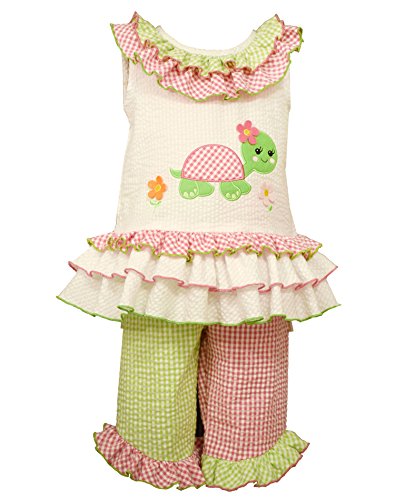 -. Title : Baby Girls Ruffley Turtle Applique Seersucker Capri Set