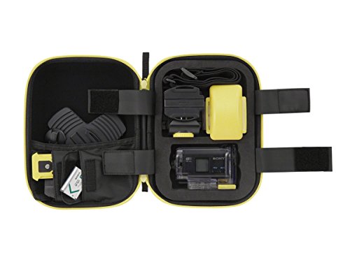 -. Feature : アクションカムの本体と、アクセサリー類をまとめてコンパクトに収納できる / 表面は撥水素材、ファスナーは止水ファスナーで、汚れをかんたんに拭きとることができ、カメラを汚れや水漏れから守る / 外形寸法(幅×高さ×奥行き):約231mm×77mm×171mm ※ 最大突起物を除く / 質量:約230g