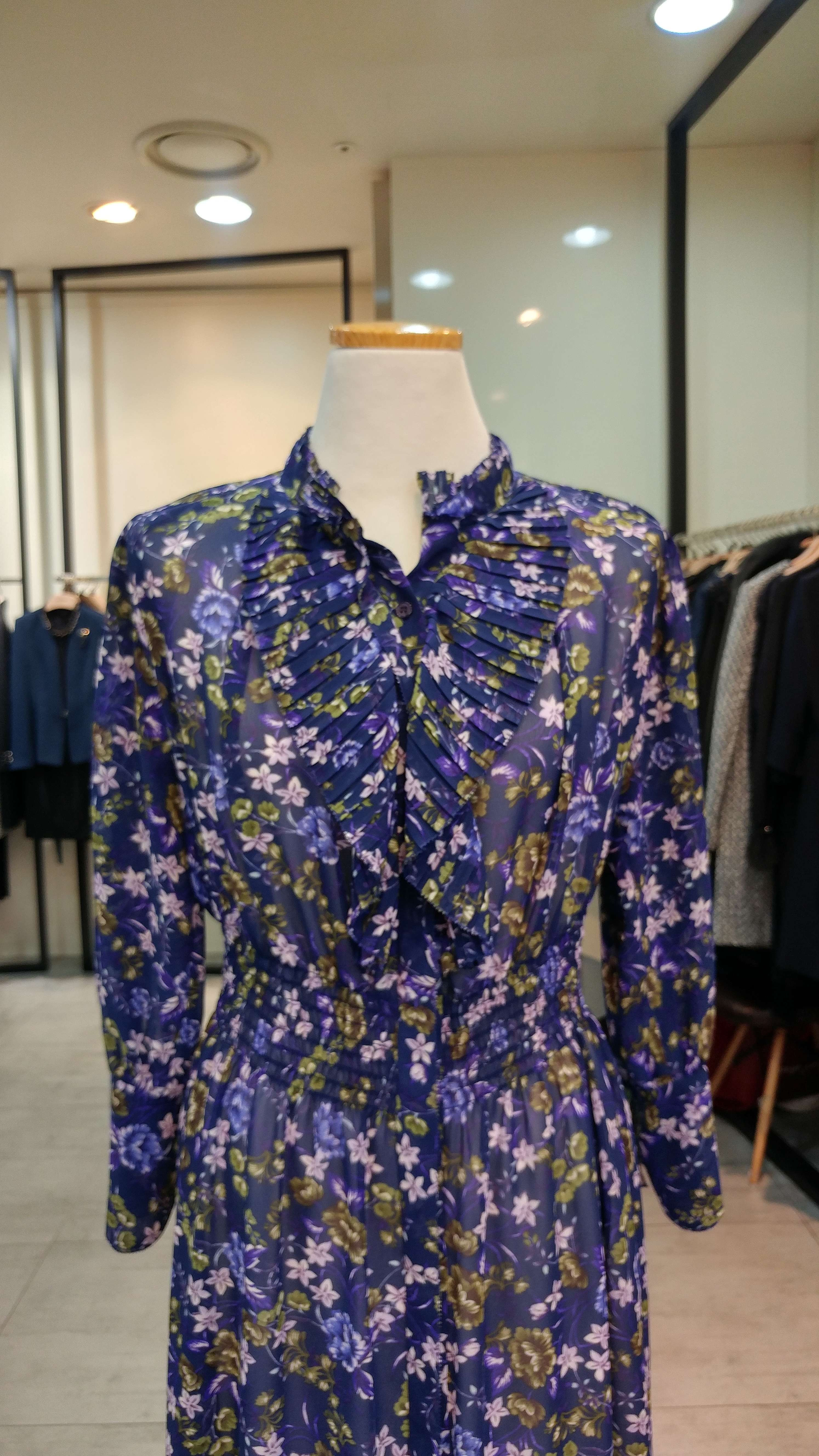 쉬폰플라워나염플래어원피스입니다^^  허리 스트링밴드처리와  네크와 앞 프릴이포인트로  페미닌하며 고급스러움이돋보이는스타일^^ 총장100