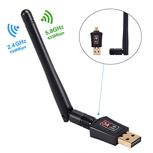 -. Feature : Dual Band (5GHz 433Mbps or 2.4GHz 150Mbps) connections for lag-free HD video streaming and gaming. Ultra-fast AC600 wireless speed with 802.11ac / High gain 2dBi long-range antenna keeps good stability and gets better performance in network connection / Easy to install, use drivers CD, simply plug in the wifi adapter to connect to your wifi with client mode or create a hotspot with AP mode / Support Windows XP / Vista / 7 / 8 / 8.1 /10(32/64bits) MAC OS X 10.4-10.11 / Use Roaming technology, promise high effective wireless connection