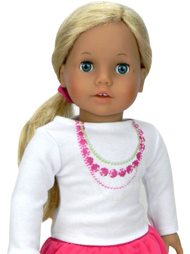 -. Feature : Made with Sophia's Promise: Superior Quality, Stylish & Affordably P.R.Iced! / 18 Inch Doll Outfit with 2 Pieces made to fit American Girl Dolls, Madame Alexander, Sophia's Dolls & More! / White Cotton Long Sleeve Tee with Pretty Silk screened Pink & Green Necklaces / Hot Pink Elastic Waist Tiered Skirt, Doll Clothes for 18 Inch Dolls! / Made by Sophia's, Leading Doll Clothes Manufacturer, Not affiliated with American Girl®, Reg. Trademark of American Girl, LLC.