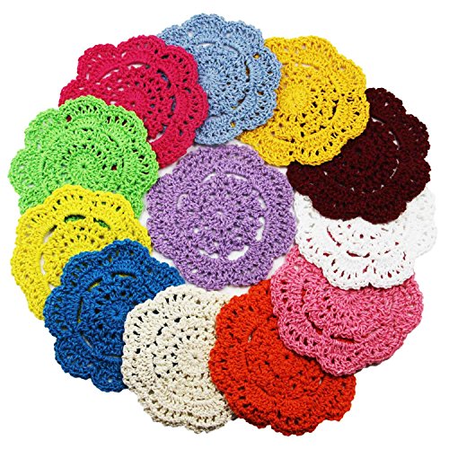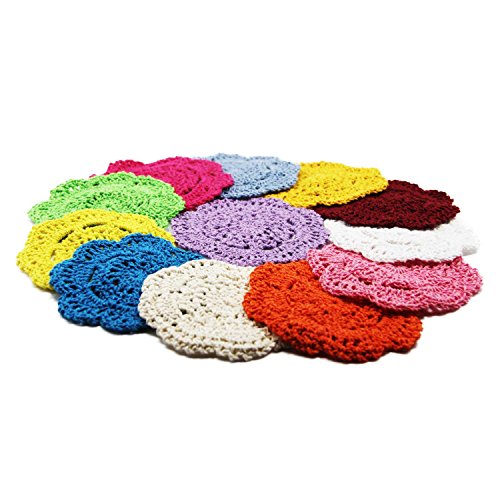 Coasters Set of 12 Colorful Handmade DIY Flower Crochet Lace Round Hollow Weaved Coaster for Drinks - Retro Cotton Tabletop Drink Coasters - 4 Inchs
