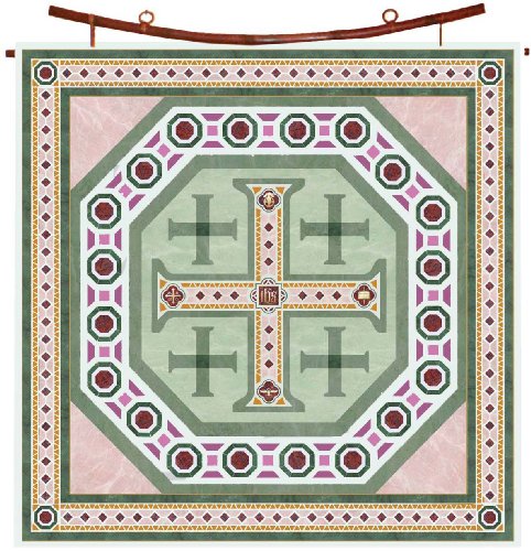- Title : Christian Silks Scarf Jerusalem Cross Design in Green, Rose, and Burgandy, Square (35" x 35")