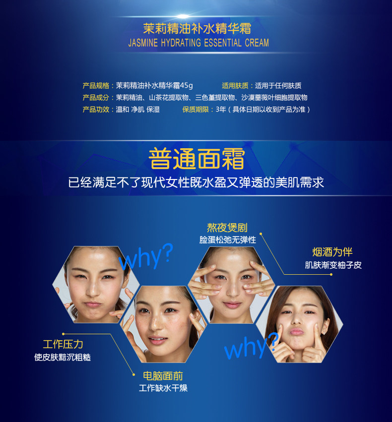 韩后面霜 茉莉精油补水精华霜45g 补水保湿 淡化细纹舒缓肌肤