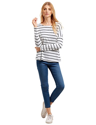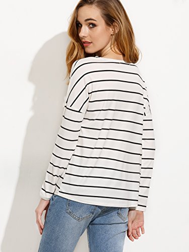 -. Title : ROMWE Women's Casual Long Sleeve Round Neck Striped T-Shirt tops