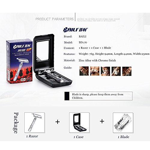 BAILI Classic Barber Double Edge Blade Shaving Safety Razor Shaver Knife Personal Beard Care Silver Color BD176