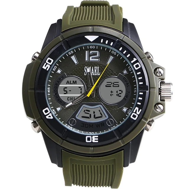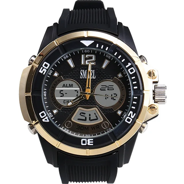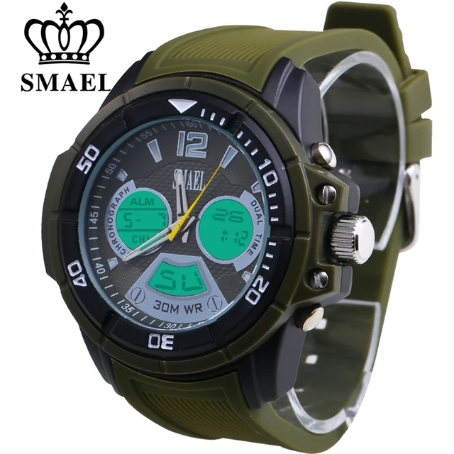 | [해외] Smael 망 최고 브랜드 고급 남성 군사 스포츠 발광 시계 크로노 그래프 가죽 석영 디지털 시계 남자 시계 |