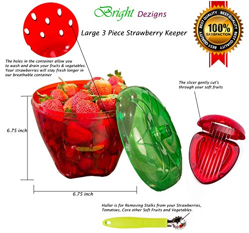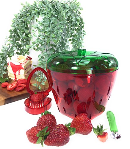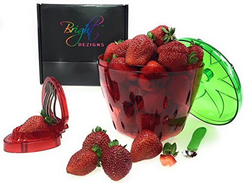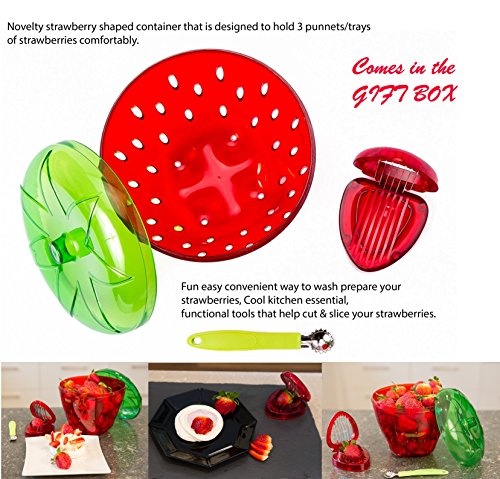 Studio : Bright Dezigns Publisher : Bright Dezigns Product Description Novelty strawberry shaped container that is designed to hold 3 punnets/trays of strawberries comfortably. Fun easy convenient way to wash prepare your strawberries, Cool kitchen essential, functional tools that help cut slice your strawberries.