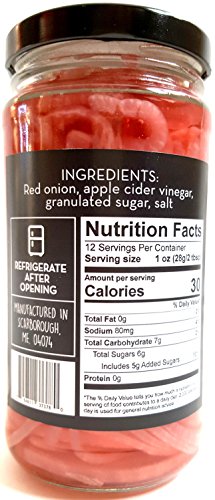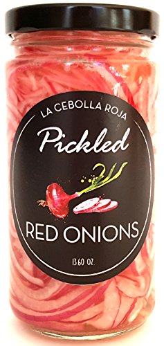 13 oz. jar of Pickled Red Onions. Sweet and tangy flavor with vibrant color. Handcrafted in small batches. Made in Maine. Serving Suggestions: Top salads, burgers, tacos, or sandwiches. Brand : La Cebolla Roja EAN : 0794811373780 Package Dimensions(LxWxH) : 22x12x9cm ; 626 g