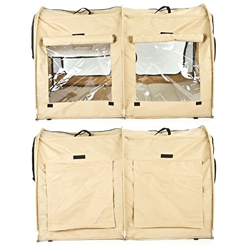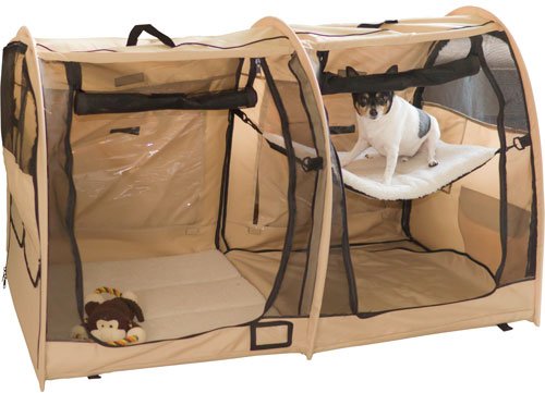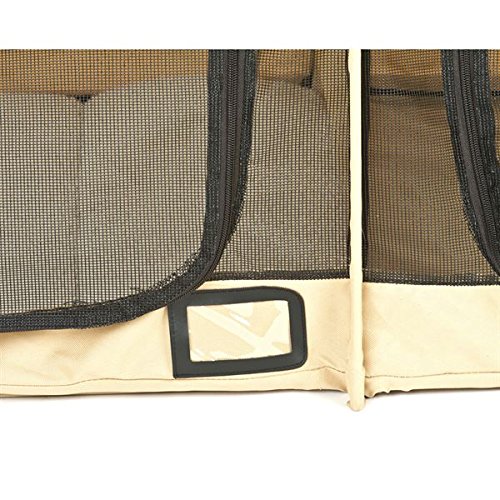 -. Feature : Soft-sided portable kennel for small pets weighing up to 16 lbs. / Works as one large pet kennel or zip up the center divider to create (2) enclosure areas / Mesh ventilated screen roll-up windows and doors / Folds flat for travel or storage, includes bag and carrying strap / Water-resistant, easy to clean polyester fabric