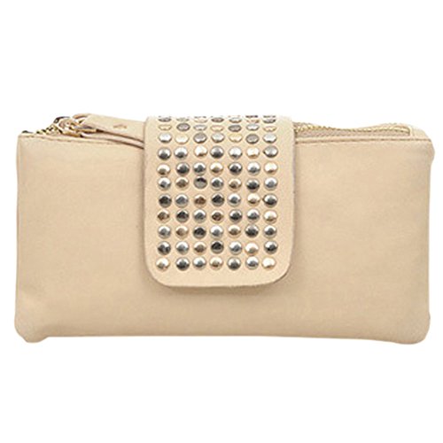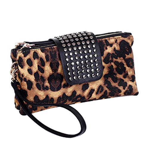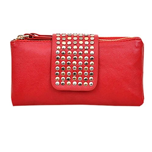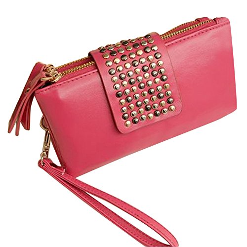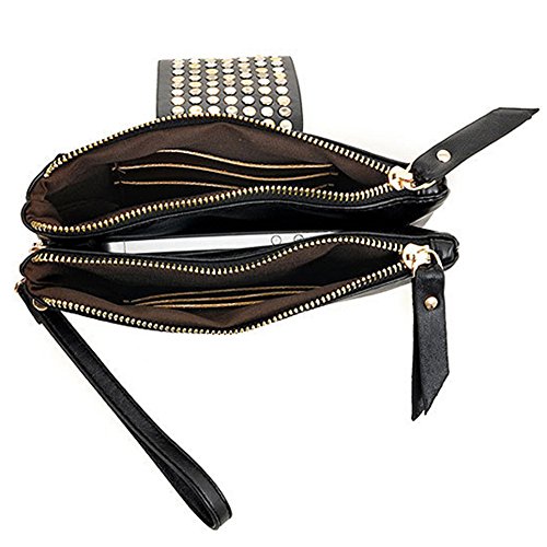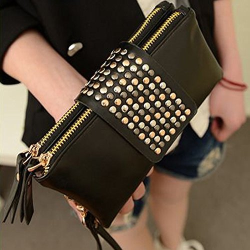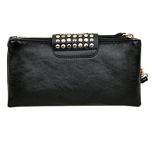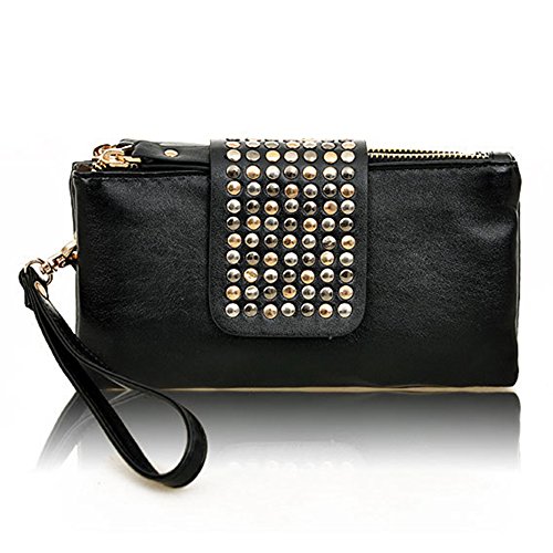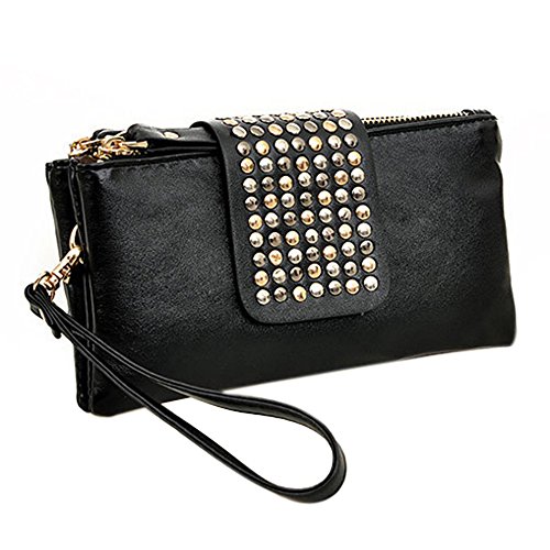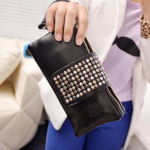 Sanwood Women Rivet Zipper Wallet Card Coin Purse Wristlet Evening Clutch Handbag (Black)