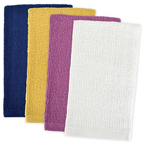 DII 100% Cotton, Machine Washable, Ultra Absorbent, Everyday Kitchen Basic, Utility, Bar Mop Dishtowel 16 x 19" Set of 4- Bold