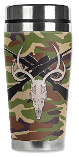 Mugzie 840-MAX "Skull & Rifles" Stainless Steel Travel Mug with Insulated Wetsuit Cover, 20 oz, Black