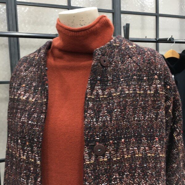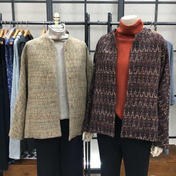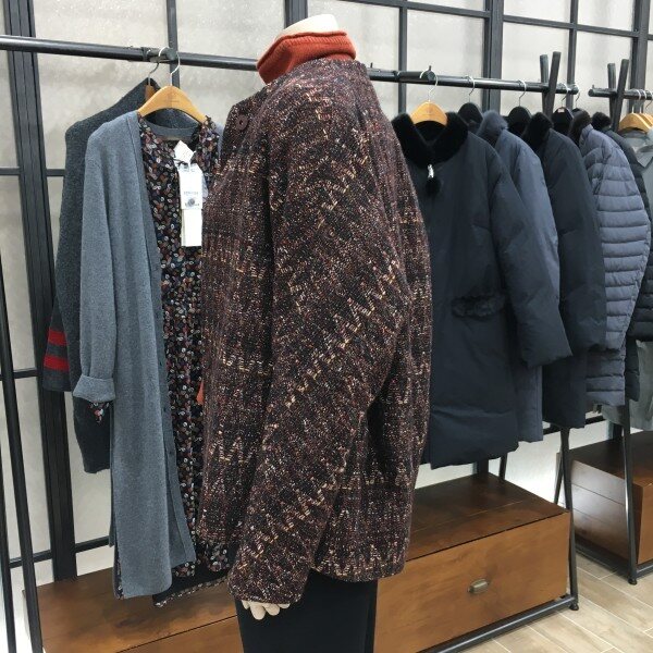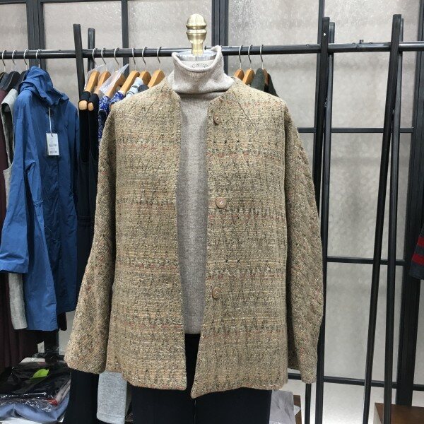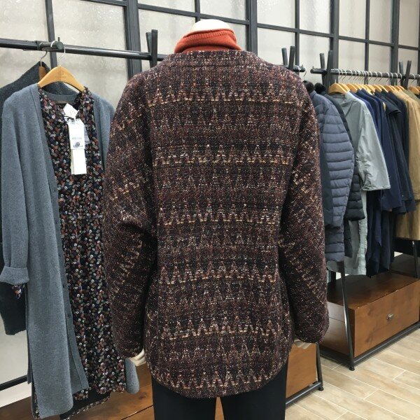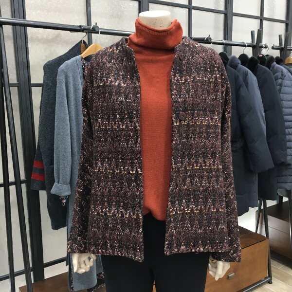 단정하면서도 세련된 느낌의 트위드자켓 소개해드릴께요. 가을에 어울리는 고급진 색상과 트위드 라인에 너무 이쁜 자켓인데요. 넉넉한 품으로 누구에게나 편하게 입어져요~ 똑딱이 버튼으로 자연스레들어가 입고 벗기도 편하고 패턴자체가 포인트가 있어 밋밋하지 않고 한층 더 고급스러운 느낌을 연출하는 아이템이랍니다. 컬러감도 은근 러블리하답니다. 스커트와 정자팬츠로 포멀하게 데님과 캐주얼하게 데일리룩, 오피스룩 등 다양한 코디로 활용하기 좋아 추천합니다:) 총장길이는 55사이즈 기준으로 73cm 입니다.
