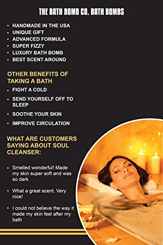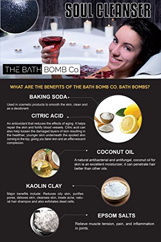 - BIG BATH BOMB - Each black "Soul Cleanser" bath bomb weighs in at approximently 5.7oz. Here at The Bath Bomb Co. we have found with trial and error that this is the perfect size bath bomb for minimal mess with the best experience possible. Buy now and enjoy!