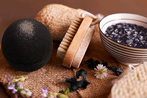 Black Bath Bomb with Gold Glitter - Large Bath Bomb 5.7oz - Anti-Aging - Epsom Salts - Coconut Oil - Kaolin Clay - Skin Moisturizers - Body Wash -...