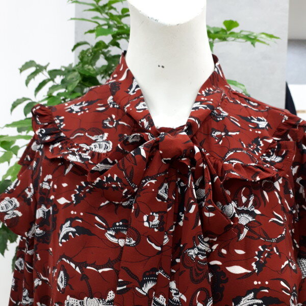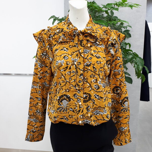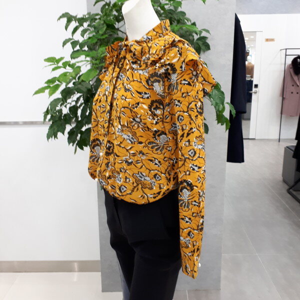 어깨에 프릴ㆍ리본칼라인 블라우스입니다