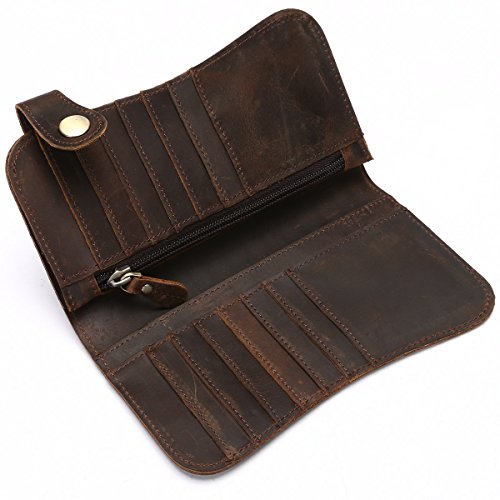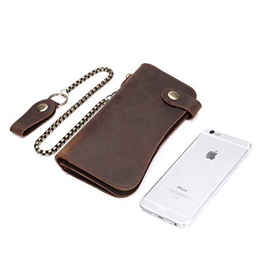 -. Feature : Premium cowhide leather makes this wallet looks very luxurious and durable,Vintage and unique design looked a lot different to most of the wallets. / Size: 7.5 x 4.3 x 0.8 inches (19 x 11 x 2 cm).Chain length:21.4 inch (55 CM).It has slight curve to slip right into your pocket,Fits well into front pants pocket. / Brown Leather Wallet With Chain and Belt Loop, closes with strong metal snap keeps everything secure. / 14 card slots,2 Interior Slot Pockets,2 bill compartment,1 zipper pocket holds phone, coins, cash, cards, receipts etc. / We Promise a no-hassle Return Policy & ONE YEAR 100% Money Back Guarantee.
