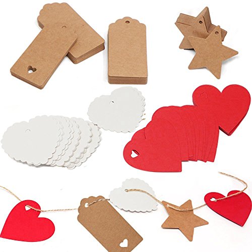 Texture Material--Brown rectangles and stars are made of high-quality kraft paper, heart-shaped is made of ordinary hard paper. The pre-punched with holes of gift tags can be connected by jute twine or cotton string.