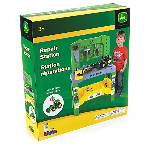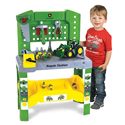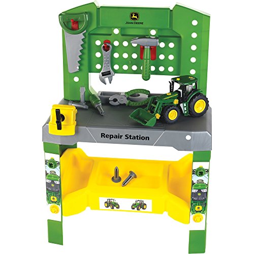 Studio : Kettler Publisher : Kettler Binding : Toy Product Description This Kettler John Deere Toy Tool Bench provides a child with a way to explore his or her curiosity about tools in a safe, playful environment. This unit features a fully interactive Repair Center that includes a John Deere tractor and a screwdriver, hammer, wrench, pliers, saw, vise, nails, screws, nuts and storage trays. Overall dimensions: 20.7in.L x 10.6in.W x 30in.H. 0