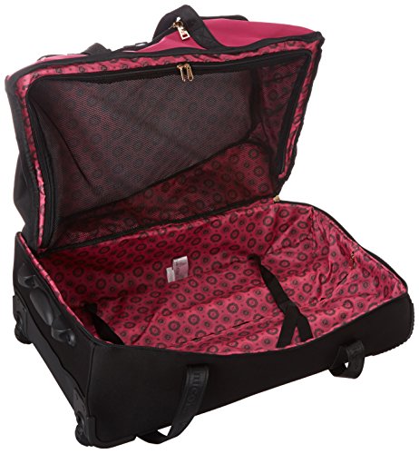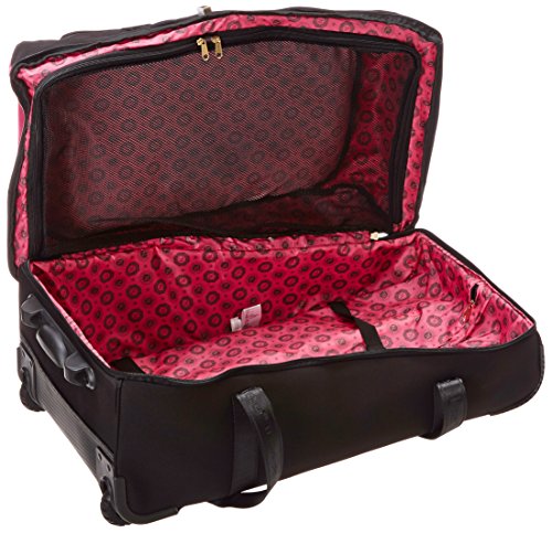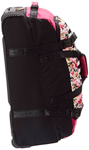 -. Binding : Apparel -. Brand : Nicole Lee -. Department : unisex-adult -. Feature : Spacious main zipper compartment, convenient top handles, U-shaped front pocket. Nicole Lee print surrounding, retractable push lock pull handle that extends up to 41 inches from floor, two way zipper closures, dual adjustable buckle snap strap, 2 inline skate wheels, 2 stabilizing feet, side and top carry handles, at back sliding glide for extra protection, front zipper pocket and Nicole Lee nameplate at the front / Fully lined with NL logo stamp, 2 adjustable ties down straps to keep clothes in place and neat during transit, small and mesh zipper pocket. Retractable handle extends up to 16 inches from the body / Available colors are Butterfly and NL Stripe. For cleaning, wipe with damp cloth / Side and top carry handles / 26.5x14.5x9 -. Label : Nicole Lee Parent Code (Lage) -. Manufacturer : Nicole Lee Parent Code (Lage) -. PackageQuantity : 1 -. ProductGroup : Apparel -. ProductTypeName : LAGE -. Publisher : Nicole Lee Parent Code (Lage) -. Studio : Nicole Lee Parent Code (Lage) -. Title : Nicole Lee Dana 26.5 Inch Rolling Duffel