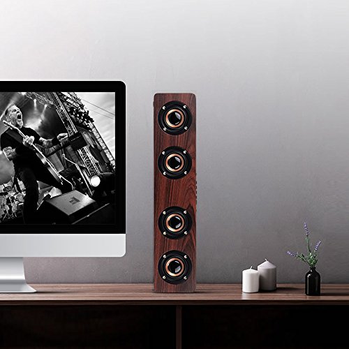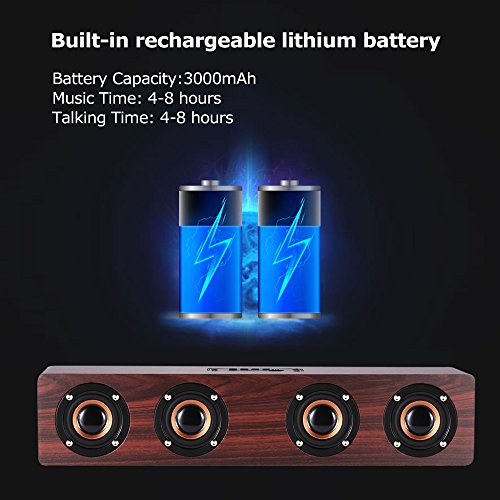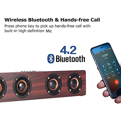 Holz Bluetooth Lautsprecher, Docooler W8 Red Wood Grain Bluetooth Speaker Bluetooth 4.2 Vier Louderspeakers Super Bass Subwoofer Hands-frei mit Mic 3.5mm AUX-IN TF Karte Slot 3000m
