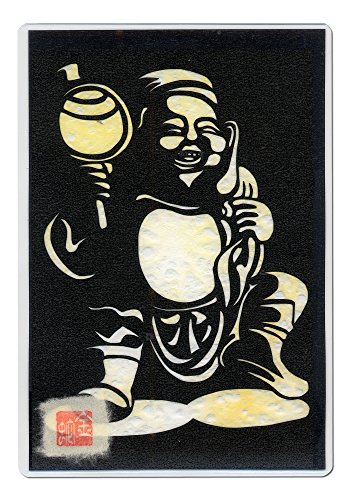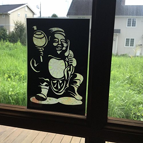 Cutout picture Japanese art collage KIRIE “Seven Lucky God · Daikokuten” Seven Deities(Gods) of Good Fortune Made by Washi(Japanese paper) Blurred Yellow, 4” x 6”