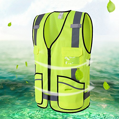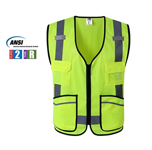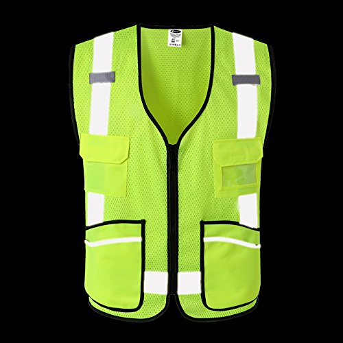 JKSafety 7 Pockets Class 2 High Visibility Zipper Front Safety Vest Breathable Mesh With Reflective Strips, Yellow Meets ANSI/ISEA Standards Cool Cool L